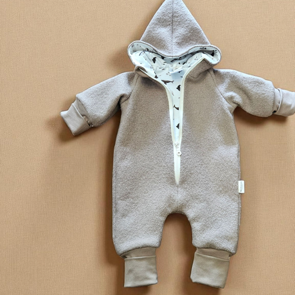 Wollwalk Overall in Taupe – Gefüttert mit Baumwolljersey (Meerestiere-Print)