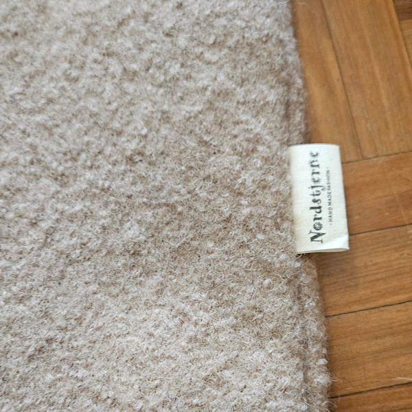 Wolle ist selbstreinigend – regelmäßiges Auslüften reicht oft aus. Bei Bedarf vorsichtig mit der Hand oder im Wollwaschgang reinigen. Nicht wringen oder rubbeln.