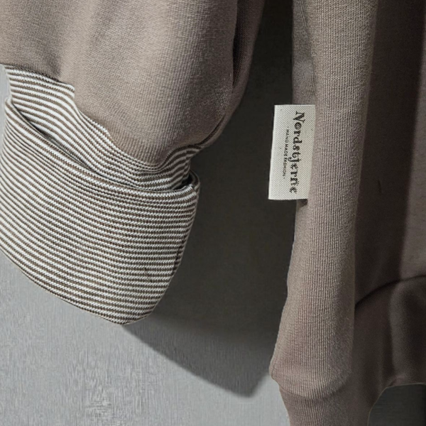 Ärmelbündchen: Taupe mit feinen weißen Streifen