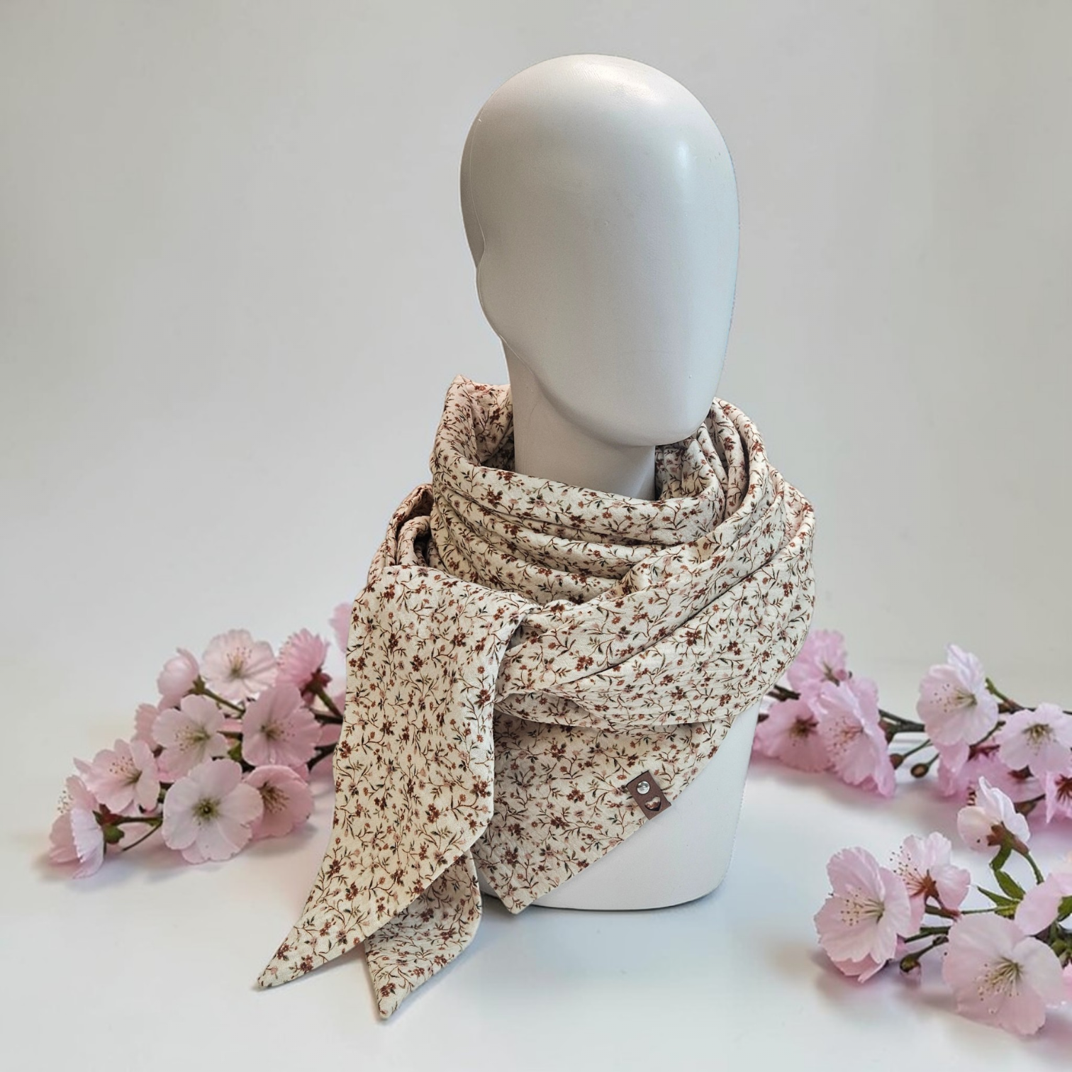 Gefertigt wird das Tuch aus einem 1,40 m x 1,40 m großen Stoffstück, wodurch ein großzügiges klassisches Dreieckstuch im XXL-Format entsteht. Durch die verstürzte Verarbeitung sind keine offenen Nähte sichtbar – das sorgt für eine hochwertige Optik und ein besonders schönes Fallverhalten.