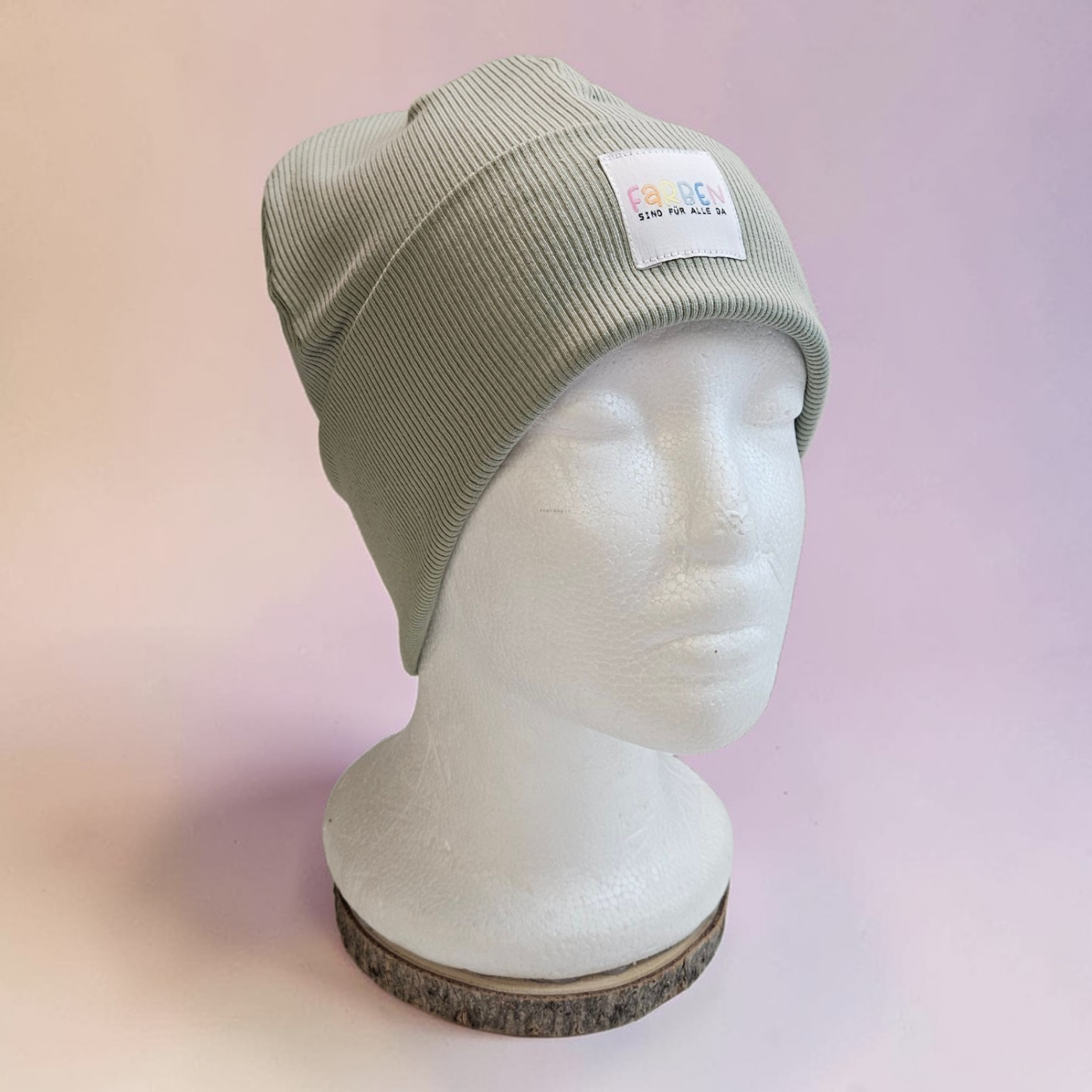 Setze ein Zeichen mit unserer stylischen Statement Beanie in der angesagten Farbe dusty green. Das schlichte Design wird durch das liebevolle Label „Farben sind für alle da“ zum echten Hingucker – eine Botschaft, die verbindet.